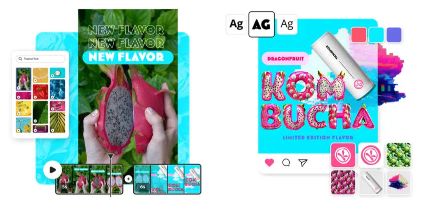 • Mehr KI-Leistung hilft Kreativen, die perfekte Ergänzung zu ihren Inhalten zu finden oder personalisierte Vorlagenempfehlungen zu entdecken, die zu ihrem individuellen Stil passen, um Beiträge für soziale Medien, Videos, Poster, Flyer und mehr zu erstellen.