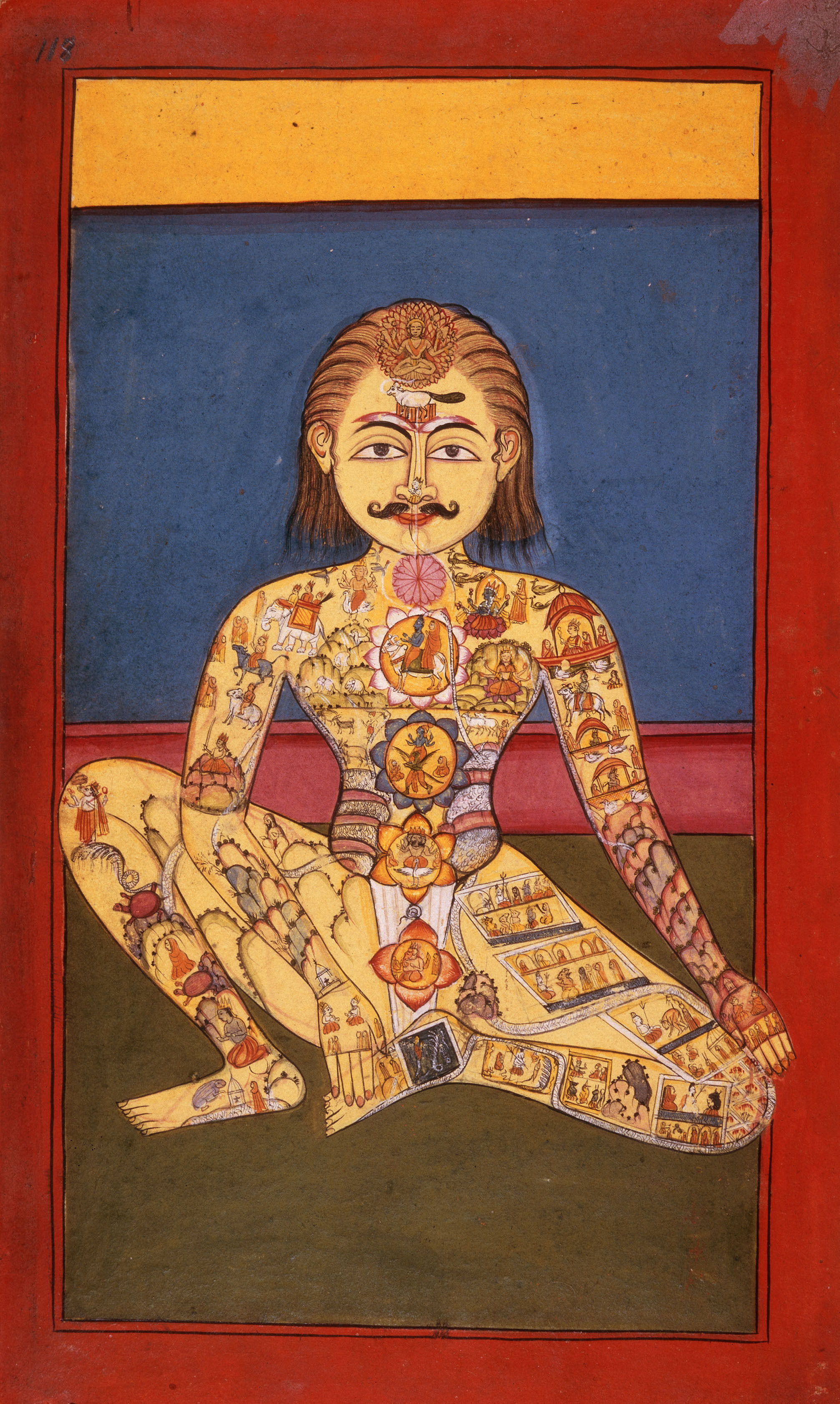 Indische Miniatur, 18. Jahrhundert. Symbolische Darstellung des vollkommenen Yogi. (Mit Darstellung der Chakren). Gouache. Aus einer Serie von Darstellungen der Yogatechnik mit Versen in Hindi in Devanagarischrift. Oriental and India Office Collections, Add. 24099, fol. 118 © akg-images / British Library