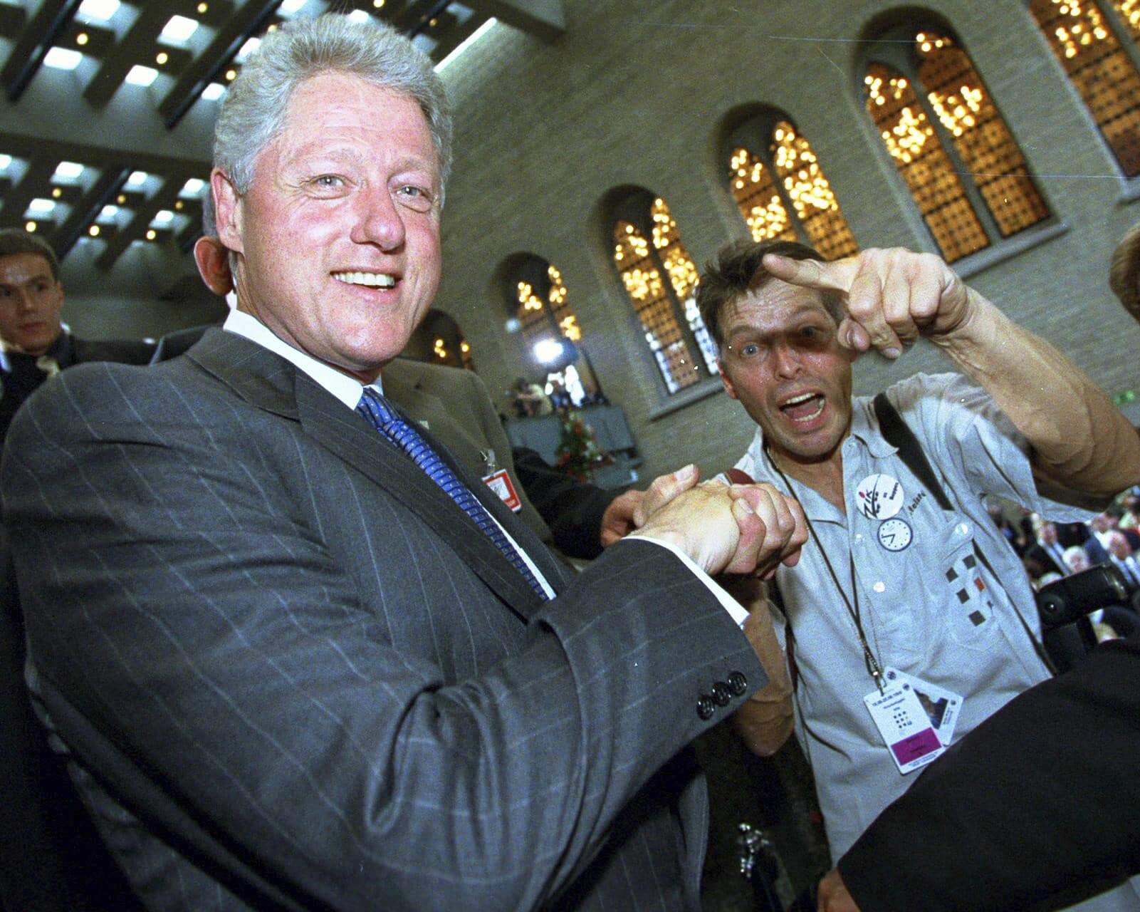 US-Präsident Bill Clinton 1999 mit EXPRESS Fotograf ZIK im Kölner Rathaus. Foto: picture alliance/ United Archives/ ZIK Images