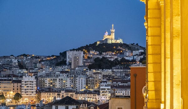 Blick bei Nacht auf Notre-Dame de la Garde in Marseille, Provence, Südfrankreich, Frankreich, Europa © Arnt Haug / mauritius images