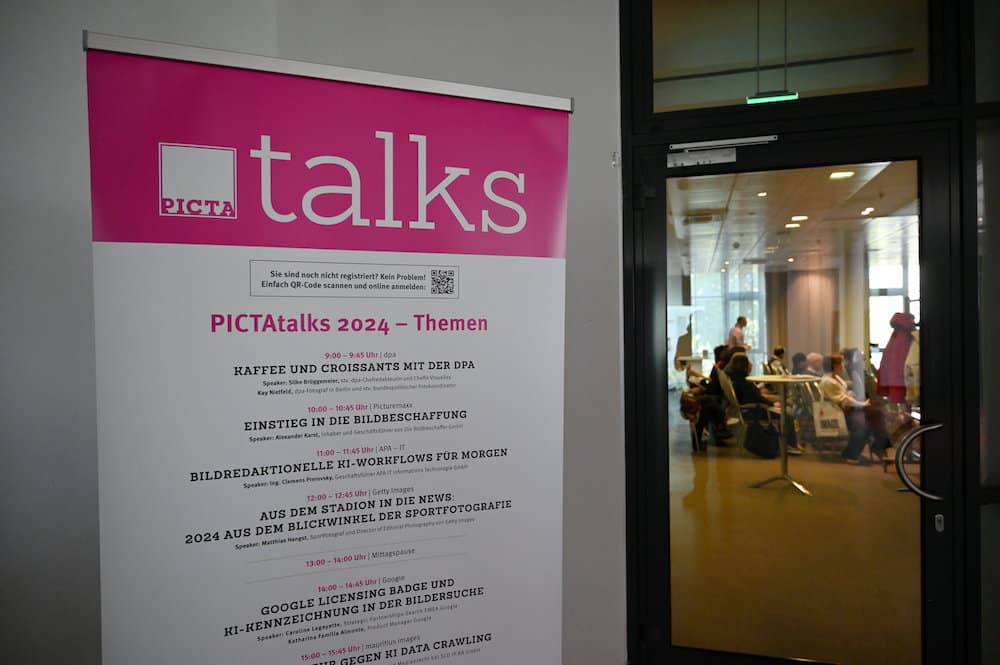 Ab 9 Uhr wurden in acht aufeinanderfolgenden PICTAtalks die „heißen Eisen“ des Bildgeschäfts behandelt. Faktenchecks, moderne Bildbeschaffung, KI-Workflows und Googles Licensing Badge standen dabei ebenso auf der Agenda wie das Sport(foto)jahr 2024, Opt-out gegen Data Scraping, Urhebernennung und die Social-Media-Bildlizenz.