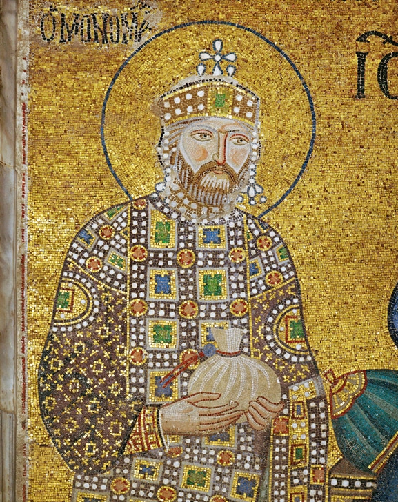“Kaiser Konstanin IX. Monomachos”. Ausschnitt aus dem Mosaik “Thronender Christus zwischen Kaiser Konstantin IX. Monomachos und Kaiserin Zoe”.