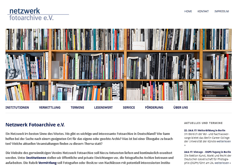 Die Webseite www.netzwerk-fotoarchive.de informiert seither über institutionell bereits gesicherte Photoarchive, über Veranstaltungen zum Thema und klärt Photographen oder Erben bzw. Nachlassverwalter mit einem Merkblatt über die wichtigsten Aspekte für das Angebot eines Photobestandes auf.