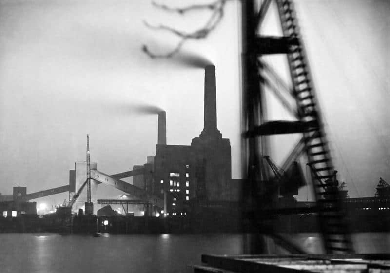 A view of Battersea power station and the river Thames at night, circa 1950 © ullstein bild