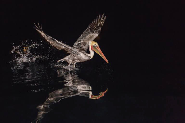 An adult brown pelican (Pelecanus occidentalis) at night near Isla Santa Catalina, Baja California Sur, Mexico, North America © imago/robertharding