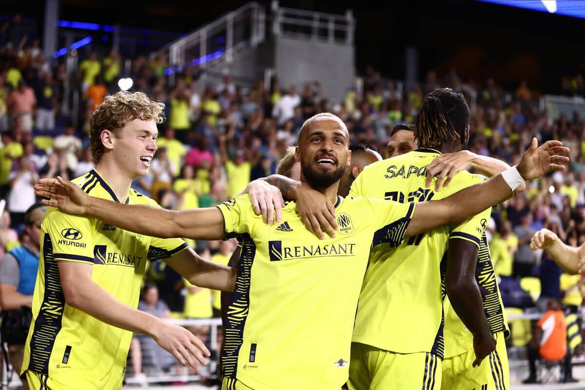 MLS, Fussball Herren, USA FC Dallas at Nashville SC, Aug 21, 2022; Nashville, Tennessee, USA; Nashville SC midfielder Hany Mukhtar (10) celebrates after scoring against FC Dallas in the first half at Geodis Park. Mandatory Credit: Casey Gower-USA TODAY Sports, 21.08.2022 19:43:10, 18908815, Geodis Park, MLS, FC Dallas, Nashville SC, Hany Mukhtar, Renasant Bank, TopPic, TopPic Copyright: IMAGO / USA TODAY Network / Casey Gower