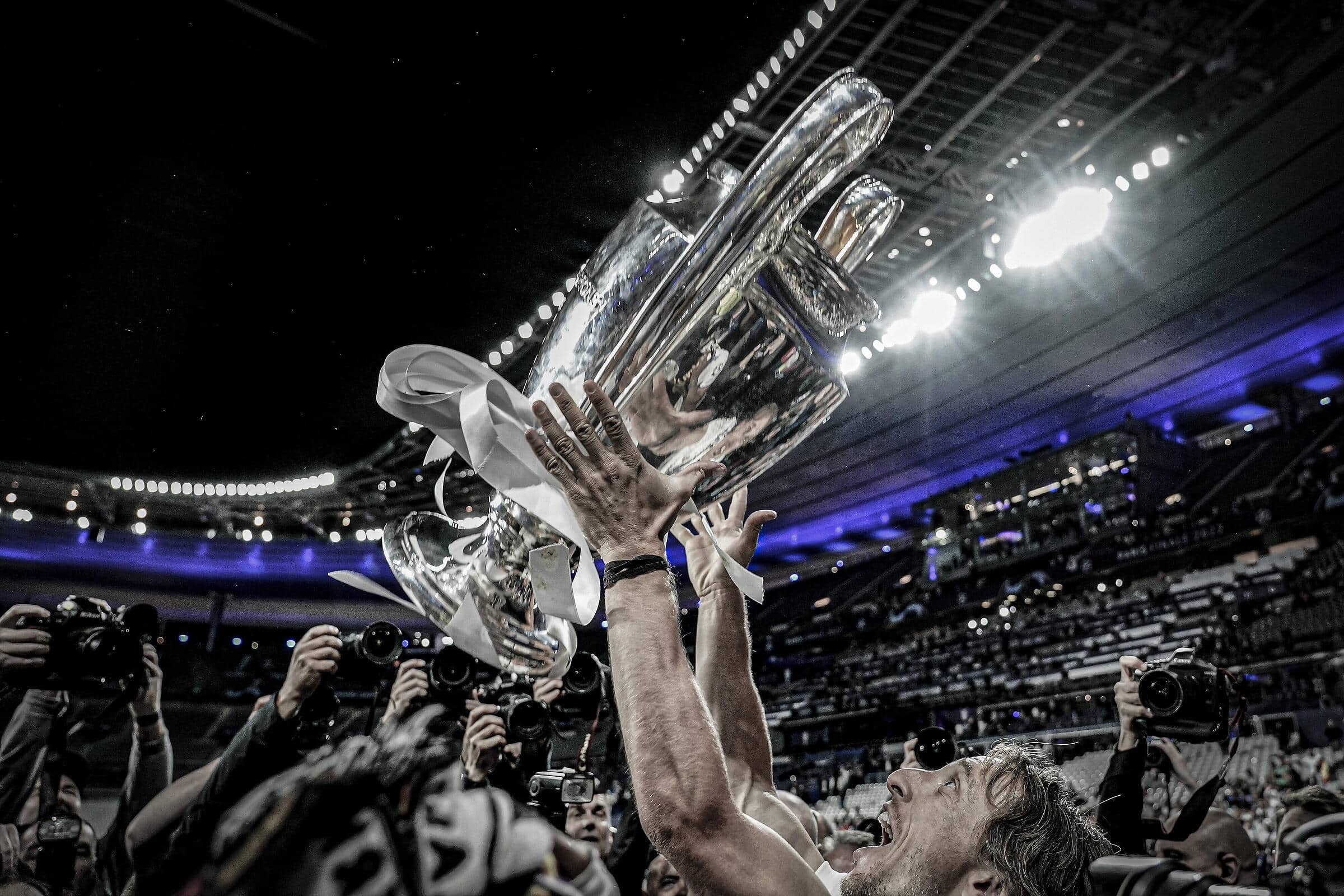Sein Bild fängt den Jubel von Luka Modrić von Real Madrid beim UEFA-Champions-League-Finale gegen Liverpool FC ein und zeigt die Sekunde, in der Modrić vor Siegesfreude den Pokal hochwirft.