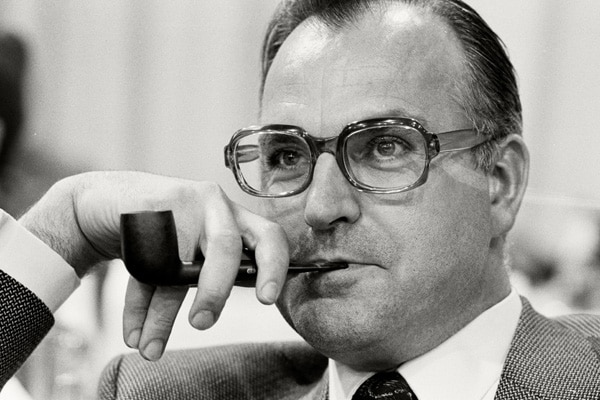 Saarbrücken. Parteitag der CDU. 1971. Ministerpräsident Helmut Kohl auf dem Parteitag in Saarbrücken. Auf dem Bundesparteitag 1971 wurde ein neuer Parteivorsitzender gewählt. Kandidaten waren Rainer Barzel und Helmut Kohl. Der umstrittene Strauß-Freund Rainer Barzel gewann die Wahl mit einer Zweidrittelmehrheit. © Max Scheler