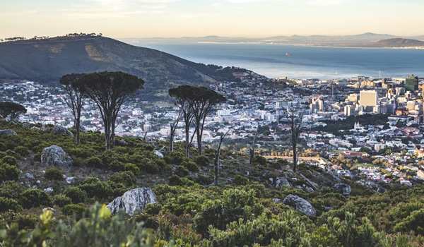 Pinie, Pinus pinea, Ausblick vom Tafelberg, Platteklip Gorge Trail, Kapstadt, Südafrika, Afrika © Jenny Woyand/mauritius images