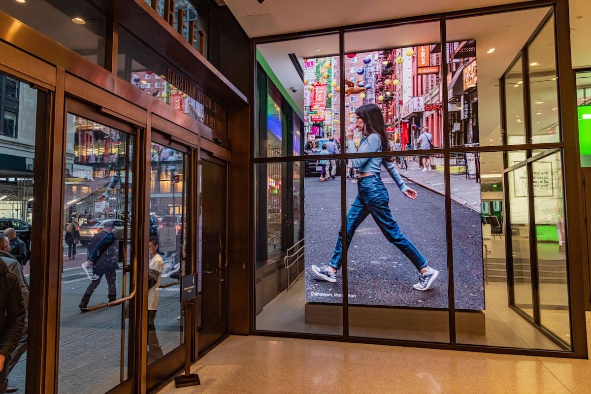 Ich fotografierte die Motive und übernahm die Regie für die Videos (Kamera: Stephen Mallon). Das Ergebnis umfasste Fotos und Videos von 20 Locations mit jeweils einem Model in allen 5 Stadtteilen, präsentiert auf meterhohen LED-Displays.