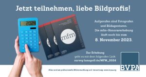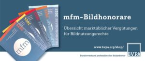 MFM-News Die mfm trauert um Max Kohr Veröffentlicht am 09. Oktober 2025 Der Vorsitzende der Mittelstandsgemeinschaft Foto-Marketing (mfm), Jan Spichala, wendet sich in dieser Woche mit einer traurigen Nachricht an die korporativen Verbände: “Unser langjähriges Mitglied Max Kohr ist am 24. September 2025 unerwartet verstorben. Max war seit vielen Jahren aktives und engagiertes Mitglied der mfm. Ich kann mich an kaum eine Sitzung der letzten zehn Jahre […] mfm startet Jahreserhebung zur Erfassung der Bildhonorare Veröffentlicht am 08. September 2025 Berlin, 08. September 2025 — Die Mittelstandsgemeinschaft Foto-Marketing (mfm) eröffnet am 8. September 2025 ihre Jahreserhebung zur Erfassung marktüblicher Vergütungen für Bildnutzungsrechte. Eingeladen sind Fotografen, Bildagenturen sowie alle professionellen Anbieter fotografischer Inhalte. Die Befragung läuft bis zum 3. November 2025. Die Ergebnisse bilden die Grundlage für die Publikation BILDHONORARE 2026, die im Januar 2026 erscheinen […] mfm: Start der Bildhonorar-Erhebung in der kommenden Woche Veröffentlicht am 04. September 2025 Die Mittelstandsgemeinschaft Foto-Marketing (mfm) eröffnet am Montag, den 8. September, ihre Jahreserhebung zur Erfassung marktüblicher Vergütungen für Bildnutzungsrechte. Eingeladen an der Erhebung teilzunehmen sind Bildagenturen, Fotografen sowie alle professionellen Anbieter fotografischer Inhalte. Die Ergebnisse bilden die Grundlage für die Publikation BILDHONORARE 2026, die im Januar 2026 erscheint. Das neue mfm-Führungsduo, Jan Spichala und Martina Landmann, setzt […] Summer Sale: BILDHONORARE Veröffentlicht am 23. Juli 2025 Zur Urlaubs- und Sommerferienzeit bieten wir einen coolen Preis für die Print-Ausgaben BILDHONORARE. Die BILDHONORARE geben Orientierung bei der Preisgestaltung von Bildnutzungsrechten. Sie dienen professionellen Bildanbietern und -abnehmern als Kalkulations- und Verhandlungsgrundlage ohne verpflichtende Wirkung. Vom 23. Juli bis 6. August gewähren wir Ihnen 33 Prozenz Rabatt. Bestellen können Sie die BILDHONORARE 2023, 2024 und […] mfm wählt neuen Vorsitz 2025–2028 Veröffentlicht am 23. Juli 2025 Berlin, 23. Juli 2025 — Auf der Jahresversammlung 2025 wurden Jan Spichala und Martina Landmann als Vorsitzende der mfm gewählt. Ziel des Führungsduos ist es, die Beteiligung an der Honorarerhebung zu steigern und die Bekanntheit der Publikation BILDHONORARE durch einfache, digitale Abrufangebote zu erhöhen. Im Rahmen der virtuellen Jahresversammlung der Mittelstandsgemeinschaft Foto-Marketing (mfm), dem Arbeitskreis […] Zu jeder Nutzung das passende Fotohonorar: BILDHONORARE 2025 erschienen Veröffentlicht am 28. Januar 2025 Berlin, 28.01.2025 – Der BVPA gibt die neue Ausgabe seiner Publikation „mfm-BILDHONORARE – Übersicht der marktüblichen Vergütungen für Bildnutzungsrechte“ heraus. Was kann ich für die Verwendung eines Bildes auf einem Plakat verlangen? Wie lässt sich die Nutzung auf einer kommerziellen Website berechnen? Kann ein erhöhter Produktionsaufwand als Aufschlag in Rechnung gestellt werden? Wie sieht es […] BILDHONORARE: Kalkulation von Nutzungshonoraren und Erstellen von Honorarangeboten Veröffentlicht am 21. Januar 2025 Berlin, 21.01.2025 – Der BVPA veranstaltet am 27. Februar 2025 ein praxisorientiertes Webinar zur Anwendung der mfm-BILDHONORARE. Berechnungsbeispiele werden durchgespielt und Fragen zu Nachlässen und Zuschlägen im Bildlizenzgeschäft beantwortet. Begriffsklärung zu fotografischen Leistungen Wo finde ich in den BILDHONORAREN die Informationen für meine Honorarkalkulation? Wann spielen Zuschläge oder Nachlässe eine Rolle bei der Honorarfindung? Welche […] Vorbestellung der BILDHONORARE 2025 in gedruckter Form Veröffentlicht am 19. Dezember 2024 Die BILDHONORARE 2025 können ab sofort als gedruckte Variante in unserem Online-Shop zum Preis von 29,80 EURO zzgl. Versand vorbestellt werden. Sie erscheinen voraussichtlich Ende Januar 2025. Das Honorarwerk ist ab Ende Januar auch wieder als “Digital-Paket” für mobile iOS-/Android-Geräte und den Desktop-Browser über unseren Shop erhältlich. Zum Online-Shop BVPA-Webinar: Urheberrechtsverletzungen an Bildern – Orientierung zur Schadensersatzhöhe bei Fotodiebstahl Veröffentlicht am 04. Dezember 2024 Berlin, 04.12.2024 – Im letzten Webinar des Jahres wirft der BVPA am 19.12.2024 einen Blick auf die aktuelle Rechtsprechung zu Urheberrechtsverletzungen an Fotografien im Internet. Referent Rechtsanwalt Florian Wagenknecht geht im Besonderen auf die Berechnung der Schadensersatzhöhe ein und erläutert die wichtigsten Parameter. Illegale Nutzungen ihrer Bilder gehören für Rechteinhaber mittlerweile zum gewohnten Ärgernis. Sowohl […] BILDHONORARE 2025: mfm-Hauptkommissionssitzung am 28. November Veröffentlicht am 21. November 2024 Die mfm ist momentan dabei, die gesammelten Daten der Erhebung zu den BILDHONORAREN 2025 auszuwerten. Um die Ergebnisse final zu verabschieden und die neue Publikation termingerecht auf den Weg zu bringen, laden die Vorsitzenden, Jan Spichala und Sarah Leyck, die BVPA-Mitglieder hiermit zur Hauptkommissionssitzung zur redaktionellen Bearbeitung der Publikation ein. Die Online-Sitzung findet am 28. […] Erzielte Fotohonorare: Start der mfm-Erhebung für BILDHONORARE 2025 Veröffentlicht am 01. Oktober 2024 Berlin, 01.10.2024 – Zum 1. Oktober 2024 startet die jährliche Erhebung der mfm zur Abbildung der marktüblichen Vergütungen für Bildnutzungsrechte. Aufgerufen sind professionelle Anbieter von Bildlizenzen wie beispielsweise Bildagenturen, Fotografen und Fotodesigner. Die Mitglieder des Bundesverbandes professioneller Bildanbieter e. V. (BVPA), der korporativen Mitgliedsverbände in der Mittelstandsgemeinschaft Foto-Marketing (mfm) sowie alle Bildanbieter in Deutschland sind […] 25. April: Termin zur mfm-Jahresversammlung steht Veröffentlicht am 04. April 2024 Die diesjährige mfm-Jahresversammlun