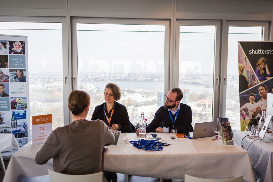 Wie schon 2013 und 2015 bot das Panoramadeck im Emporio-Tower mit der beeindruckenden Aussicht über die Hansestadt einen hervorragenden Ort für den Bildbranchentreff. Der ausgewählte Fachbesucherkreis, das erstklassige Ambiente sowie ein exzellentes Buffet inklusive Service schufen einen idealen Rahmen für intensive Kundenkontakte.