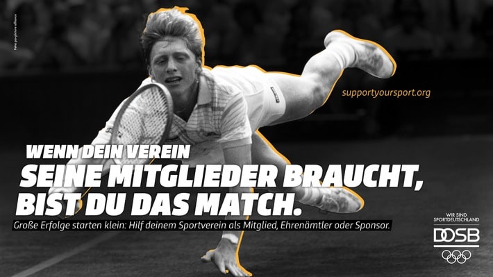 #SupportYourSport titelt die Kampagne, mit der der DOSB die rund 90.000 deutschen Sportvereine in der Corona-Krise unterstützen möchte / Boris Becker für supportyoursport.org. © picture alliance/DOSB