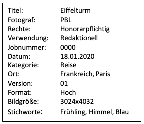 Damit Strömung im großen Bilderpool entsteht, bedarf es eines Metadatenkonzepts. Es definiert ein Set von beschreibenden Bildinformationen. Diese angehängten Zusatzinformationen ergeben sich aus den Stammdaten des Fotografen und der Motivwelt, in der sich der Fotograf bewegt. Sie bieten nicht nur informatorischen Mehrwert, sondern sind der Turbo für die Bildverwaltung.