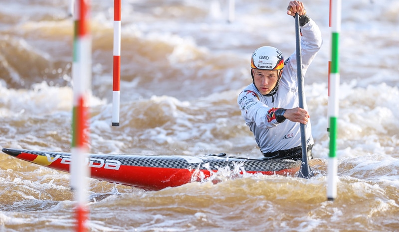 Franz Anton (Canadier Einer Herren) bereitet sich am 25.02.2021 in Leipzig auf die Olympischen Spiele vor. Foto: picture alliance/ dpa/ Jan Woitas