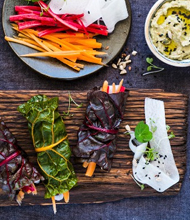 Dabei steht neben Schnelligkeit die Kreativität im Vordergrund: Gesunde Zutaten kommen in aufregende Hüllen – Spinat-Kräuter-Teig oder gebratenen Mangold beispielsweise. Grenzenlos geht es auch bei den Kombinationen zu: Blüten und Thuna kommen genauso in die Rolle wie Kokosreis und Gurkensalat.