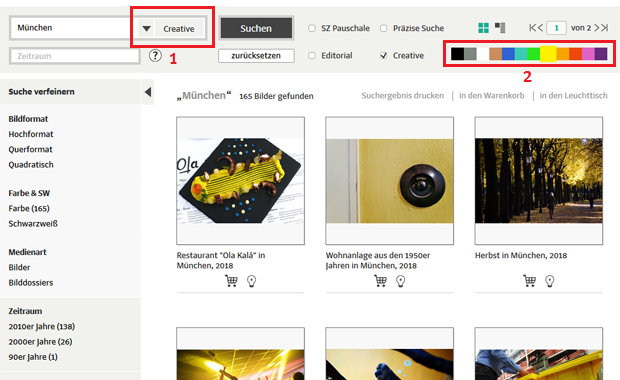 SZ Photo: Farb- und Creative-Suche im Webshop jetzt noch einfacher