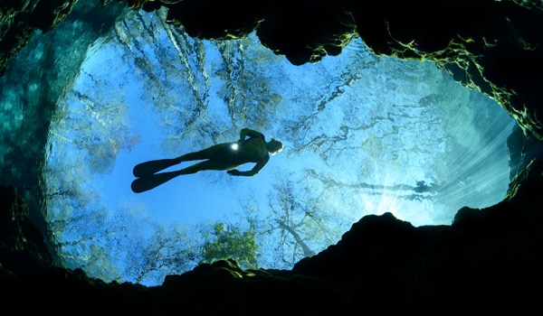 Taucher in Devils Ear, Quelltopf bei Ginnie Springs, High Springs, Gilchrist County, Florida, USA © Wolfgang Pölzer / mauritius images